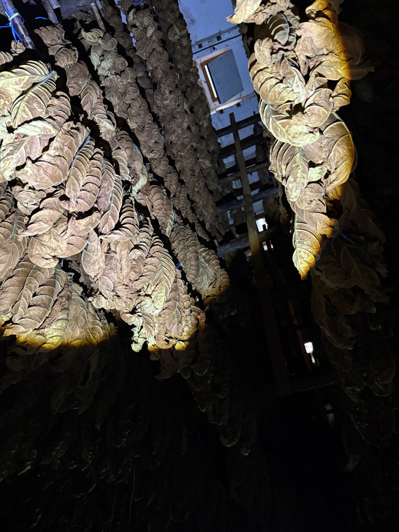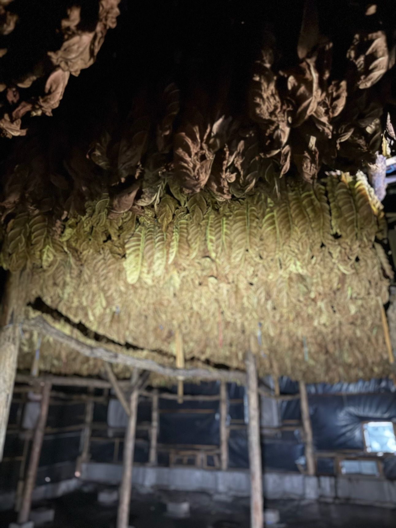 Fresh tobacco placed in a very humid barn to begin their curing process.
