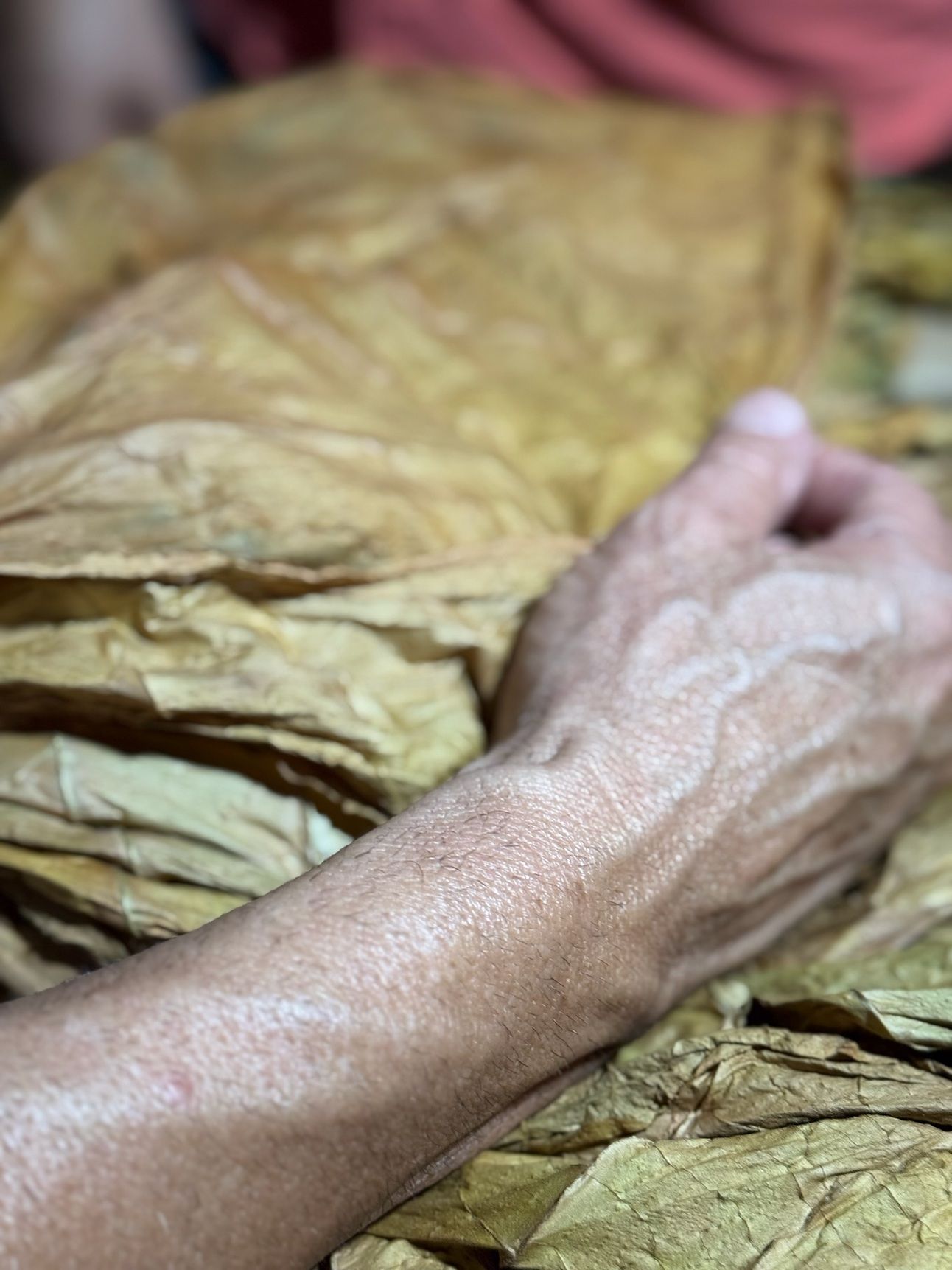 Fermenting the tobacco and rotating it. They rotate every single piece by hand multiple times throughout the fermentation process. This pile of tobacco is called a Pilón.